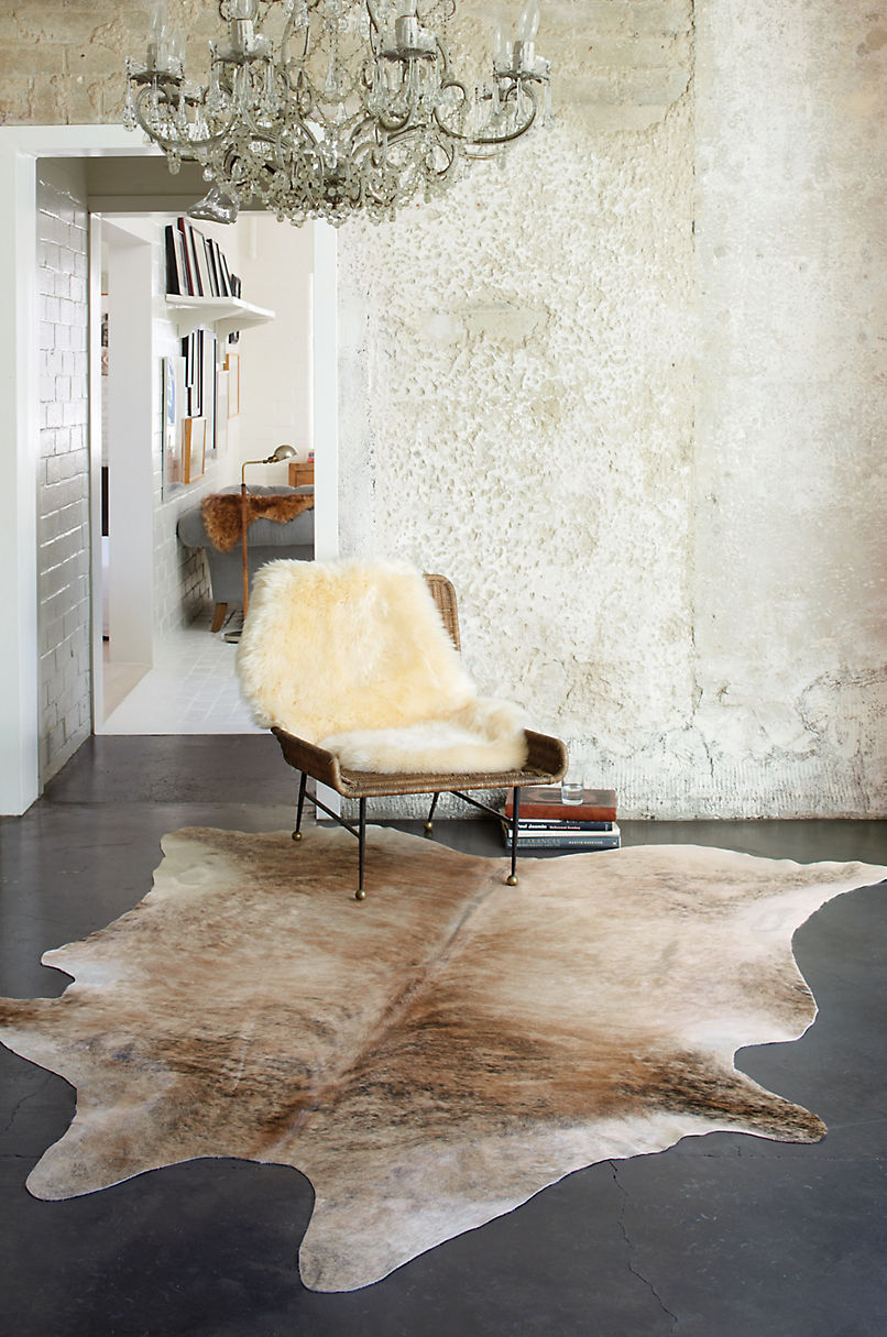 Cowhides are a great way to bring in more texture color and dimension into a space.